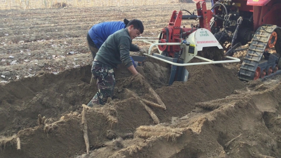 4UZ-1薯類收獲機(jī)收獲大姜作業(yè)
